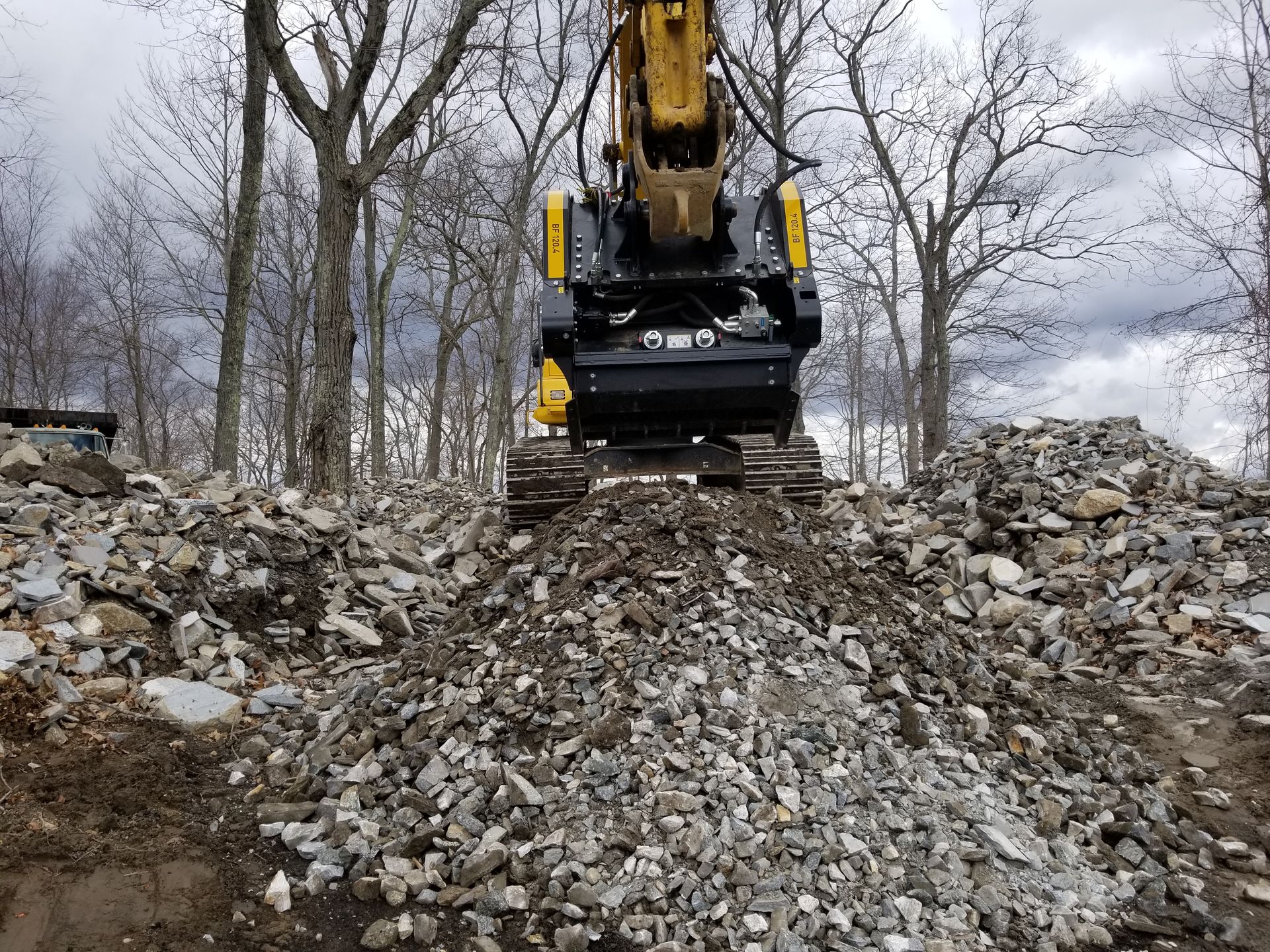We will give a price to crusher it hammer bit the yards. To down-size and crusher the rock or concrete into a used able aggregate. We do small jobs like 50 yards all the way up to to 10,000 yards. We can save you money without the expense of trucking it. Why pay someone to get ride of the concrete or stone to buy back from them later? I am an East Coast MB crusher dealer we can also sell or rent you a crusher.